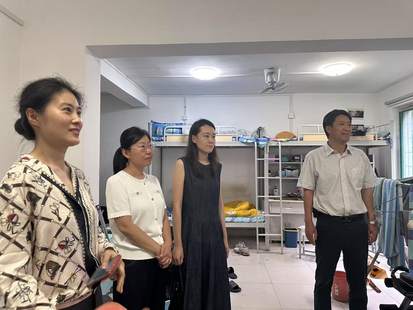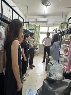 孟德洋与老师们逐一走进毕业生宿舍,与同学们亲切交谈,细致入微地询问了毕业生们的就业落实情况、未来规划、毕业手续办理进度以及存在的困难。他们还与同学们共同回顾了校园生活的点点滴滴,分享了临别前的真挚情感,对同学们取得的成绩表示了由衷的祝贺与肯定。