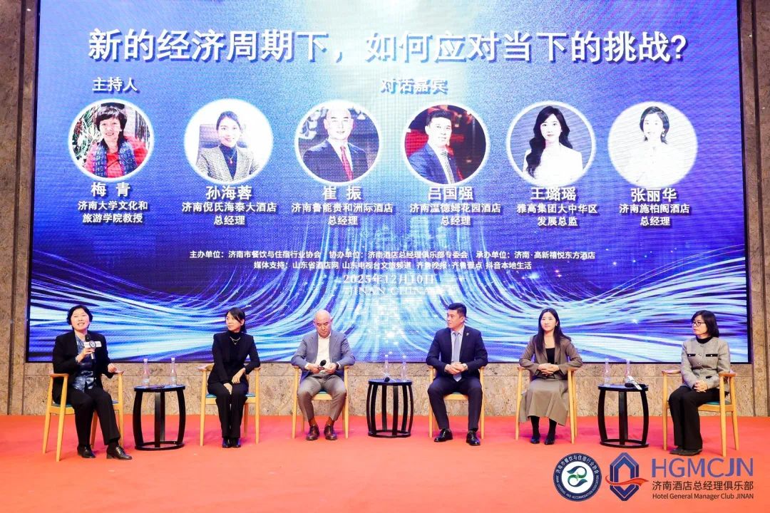 本次大会由济南市餐饮与住宿行业协会主办,济南酒店总经理俱乐部专委会协办,吸引了来自150余家酒店的260余位政企学界代表参与。大会期间,济南市商务局党委副书记、副局长王志刚,山东省饭店协会会长黑伟钰等领导嘉宾先后致辞,肯定了济南餐饮与住宿行业的发展成效,并强调“文旅+餐住”融合发展的重要性;济南市餐饮与住宿行业协会会长张磊作年度工作报告,总结复苏成果并规划未来发展。多位行业专家围绕酒店品质服务、国潮文化融合、绿色发展、数字化转型等主题分享前沿观点,为参会师生展现了全面的行业发展新图景。