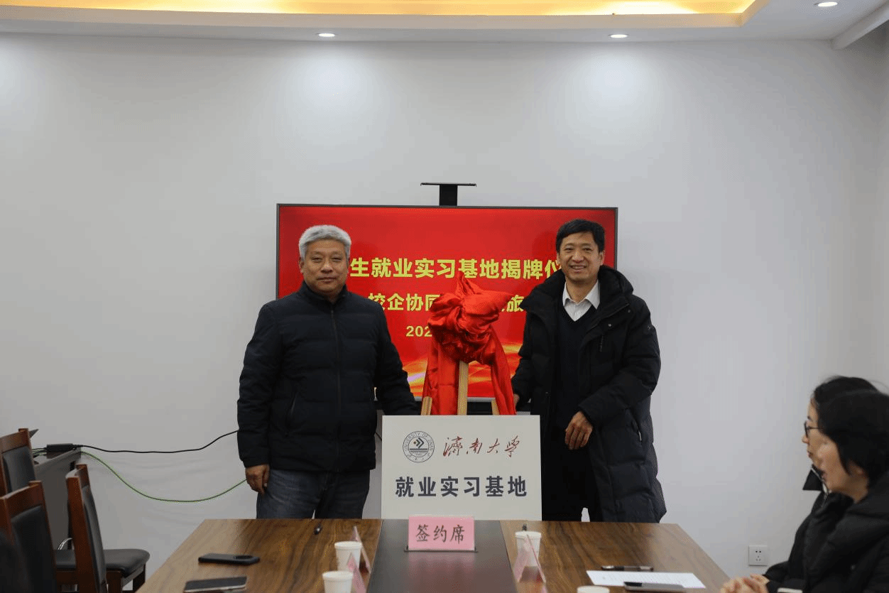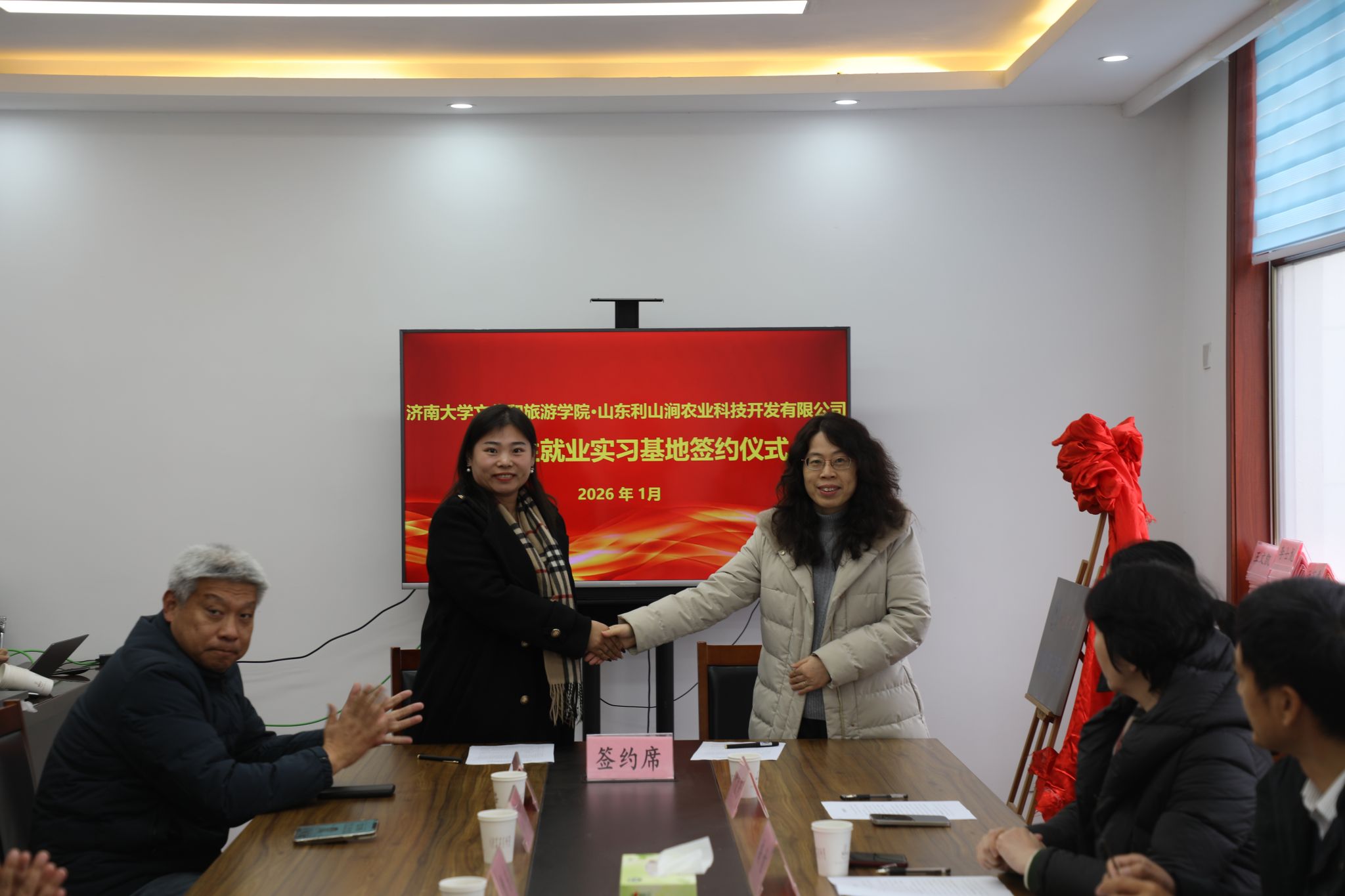 随后,孟德洋与山东天蒙旅游开发有限公司、山东沂蒙原乡文化旅游发展集团、山东合广旅游集团有限公司、山东利山涧农业科技开发有限公司四家公司负责人共同为《济南大学就业实习基地》揭牌;信苏珊、学院教授梅青、学院副教授孙淑荣与四家企业负责人签订《济南大学就业实习基地协议》。