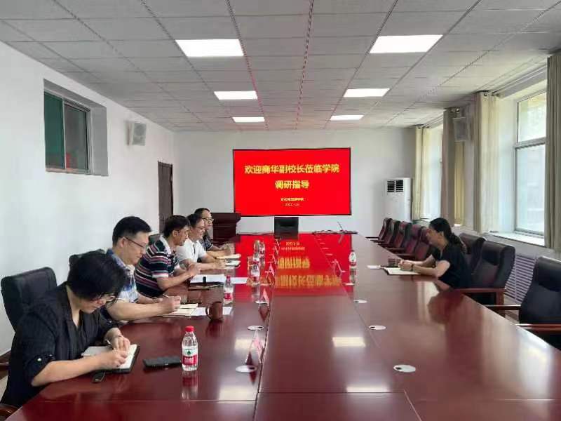 学院党委书记孟德洋首先对商华副校长到学院调研表示欢迎,并感谢商华副校长对学院工作的关心和支持。孟德洋简单介绍了学院基本情况,并重点就学院专业建设、科研与学科建设、师资队伍建设、学生工作、党建工作以及今后工作重点、存在问题和困难等六方面工作进行了详细汇报。孟德洋表示,学院将充分发挥专业特色,坚持内涵式发展,以人才培养质量为核心,以应用型人才为培养目标,以社会服务为依托,探索产学研结合的办学教育新模式,争取提升社会影响力和贡献力。