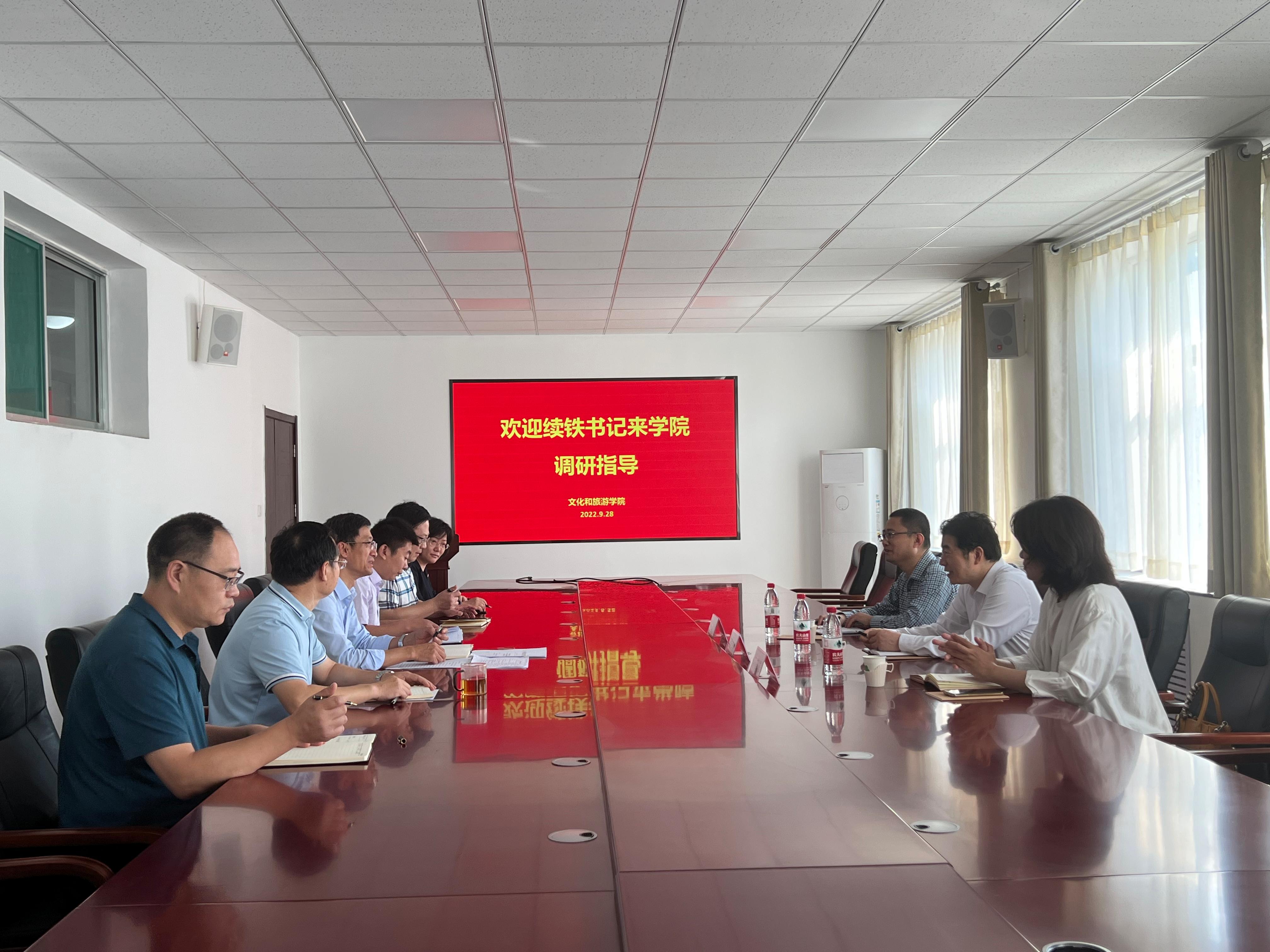 专题调研学校第四次党代会精神的学习宣传贯彻落实情况,并与学院班子成员交流座谈,纪委副书记孙菲菲,纪委、监察专员办公室综合处处长张存凯陪同调研,学院领导班子全体成员参加座谈。