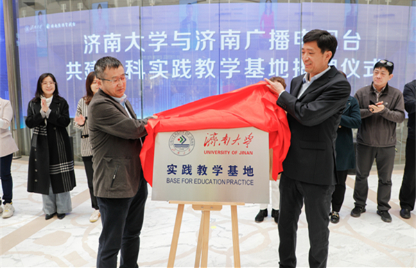 党委书记孟德洋,济南广播电视台党委委员、副台长隗铜共同为“济南大学实践教学基地”揭牌。