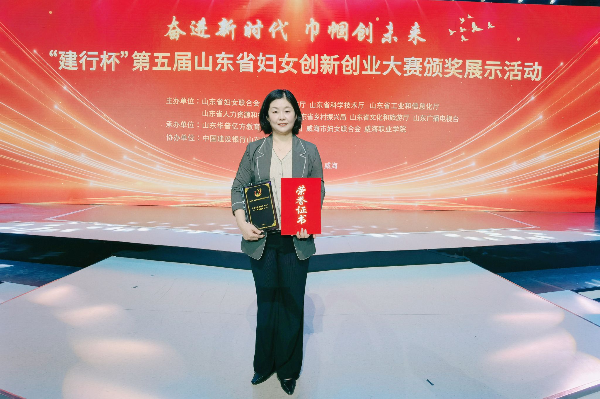 9月26日至27日,由山东省妇女联合会、山东省教育厅、山东省科学技术厅、山东省工业和信息化厅、山东省人力资源和社会保障厅、山东省乡村振兴局、山东省文化和旅游厅、山东广播电视台主办,威海市妇联、山东华普亿方教育科技有限公司承办,中国建设银行山东省分行协办的“建行杯”第五届山东省妇女创新创业大赛决赛及颁奖展示活动在威海职业学院举行,蜂鸟电竞
