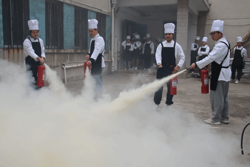 于舜耕校区精心策划并成功举行了一场别开生面的烹饪实验室消防演习。学院党委书记孟德洋,保卫处舜耕校区安全管理科科长张绍春,以及相关老师、安保队员、学院烹饪专业新生等参加演习活动。