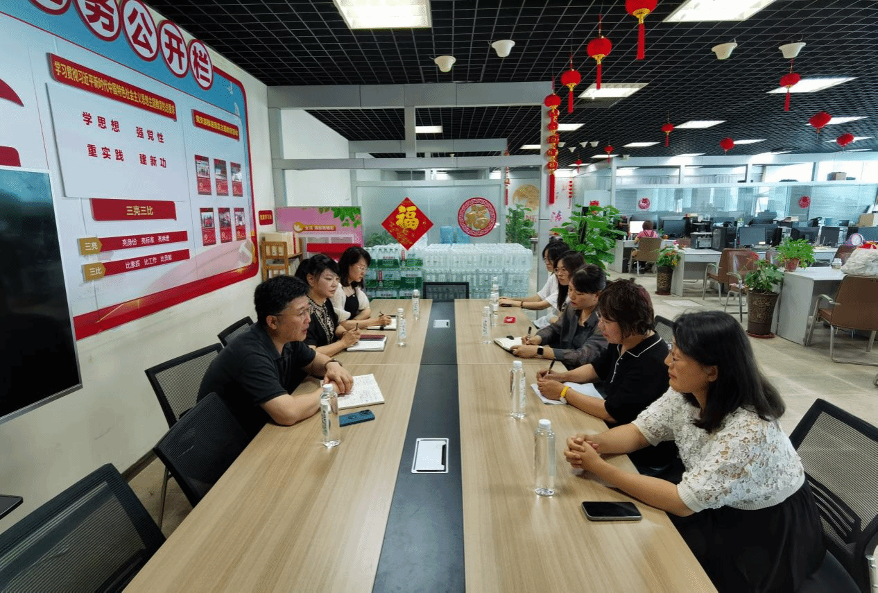 为制定合理的2024版人才培养方案、调研传媒行业的人才需求情况、拓展学生实习单位、了解市级电视媒体的发展现状及趋势,2024年6月6日下午,文旅学院文管系党支部师生一行6人,来到了位于舜耕路的济南广播电视台电视生活频道进行考察交流。频道总监刘伟敬、频道副总监苗虹、《共治》栏目制片人邹晓伟热情地接待了文管系党支部师生。