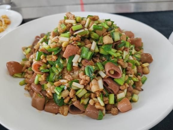 第三天,同学们赴烟台文化旅游职业学院。学院将胶东饮食文化深度挖掘,实训教室中的非遗文化展区,让同学们赞不绝口。在后续的学习中,中国烹饪大师、二级教授邓介强老师带来“海肠捞饭”“炸龙利鱼排”“油爆海螺”三款胶东名菜教学。“海肠捞饭”选用鲜活海肠,酱汁调配独家秘方;“炸龙利鱼排”对选材、腌制、裹粉和火候把控要求严格;“油爆海螺”选活螺,去腥增脆有妙招。同学们分组实操炸鱼排,从最初的手忙脚乱到在老师指导下炸出金黄酥脆的成品,收获满满成就感爆棚。