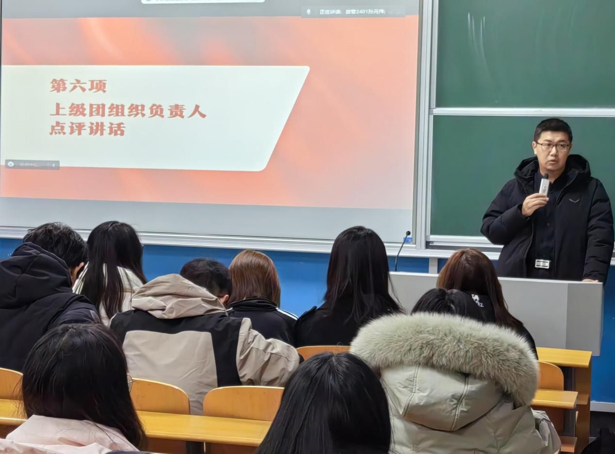 开展2024年度示范性团员和青年主题教育专题组织生活会,会议由孙元伟同学主持,学院团委书记吕龙飞老师、旅管2401团支部16名团员及2名优秀青年代表参加会议。
