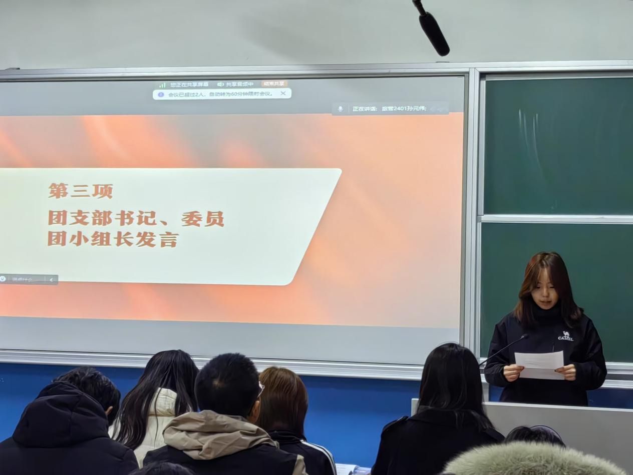会议伊始,旅管2401团支部书记孙元伟报告团员和青年主题教育开展情况,随后,团支部副书记、委员、其他团员依次发言,在交流中查找不足。其他团员对其进行评议,肯定成绩,指出不足。其中,评议包括团员评议和民主评议,组织以团支书孙元伟、副团支书张泳秋、宣传委员郁菀茹三位同学为代表,在思想、工作、学习等方面的表现进行了综合评价。此外,学院团委书记吕龙飞老师对本年度的团员组织生活会进行了点评讲话,为团支部下一步的工作方向提供明确的指引,帮助团支部在未来的工作中更好地发挥作用。