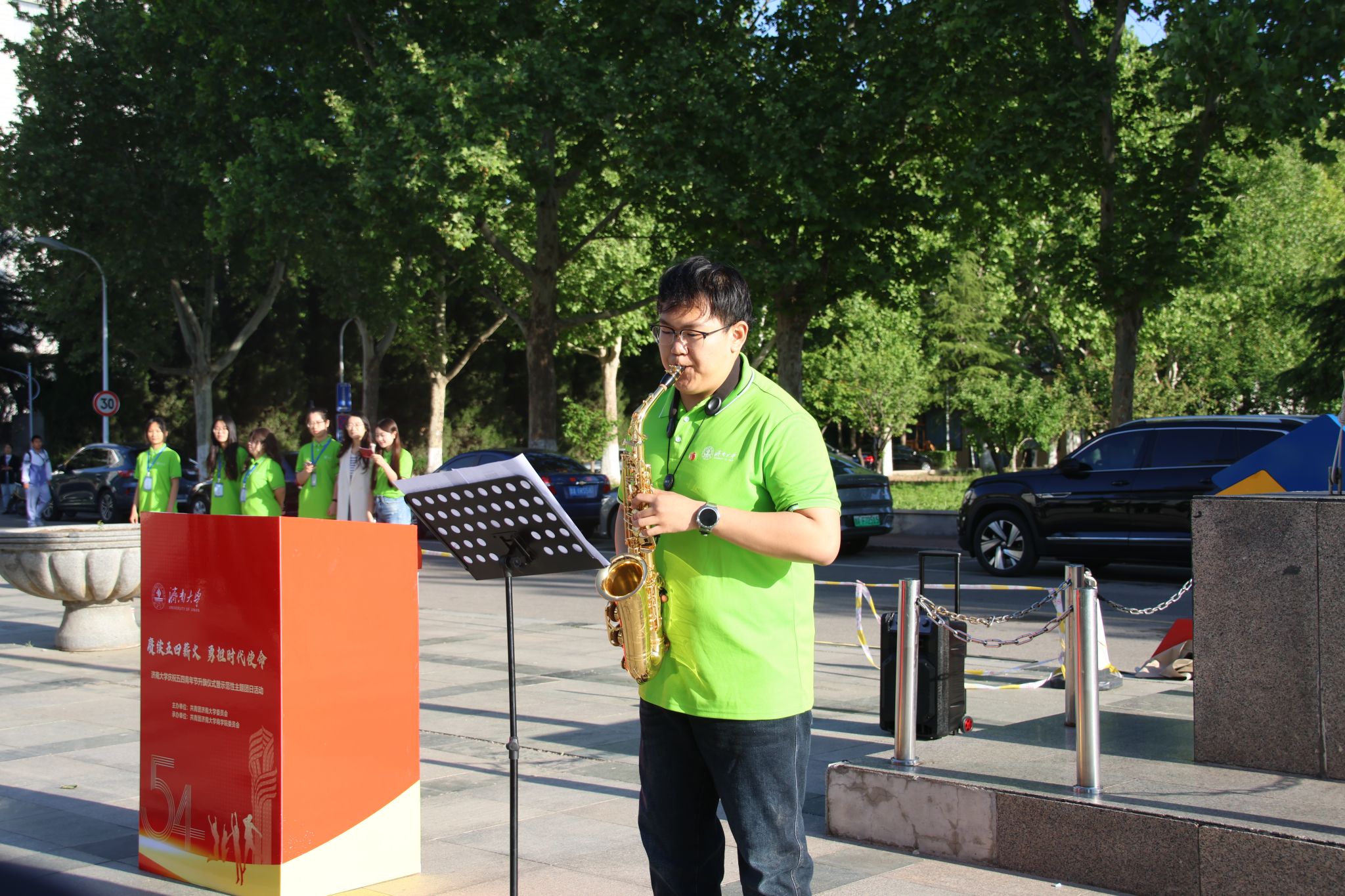 为纪念五四青年节、宣扬五四精神,有学子以“我们须勇担时代使命”为题激情演讲,慷慨激昂;有学子以萨克斯奏响《我的祖国》,清澈悠扬的旋律流淌在晨曦中,动人心弦;有学子接力献唱爱国歌曲,歌声激越,青春热血随音符澎湃。