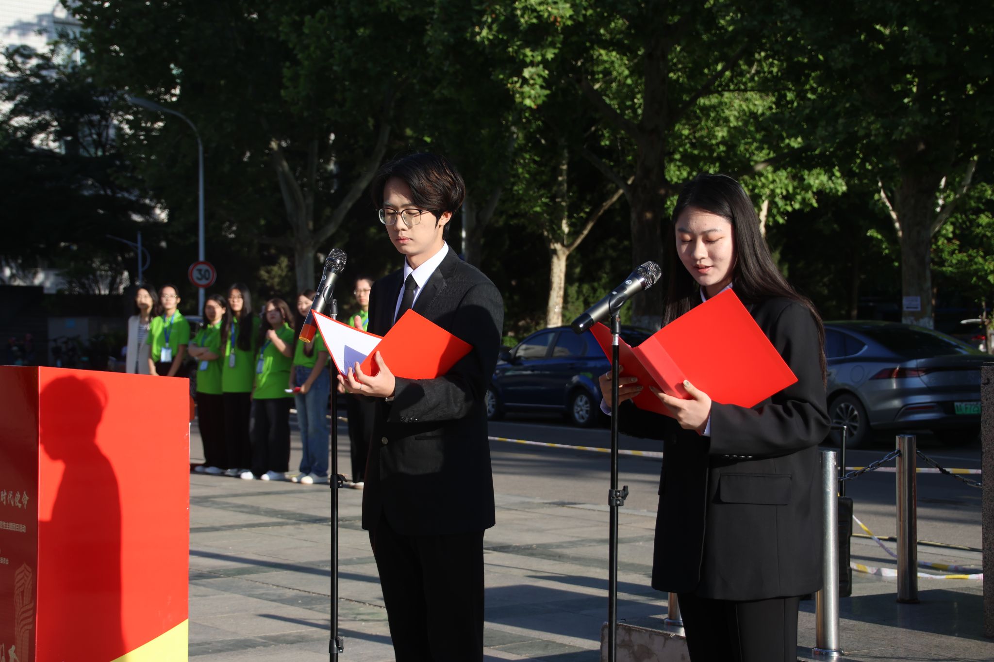 四月的清晨,微风轻拂,朝阳初升。为纪念五四运动105周年,传承“爱国、进步、民主、科学”的五四精神,4月28日7时,济南大学舜耕校区经管楼前举办了一场庄严的升旗仪式暨示范性主题团日活动,点燃了青年学子心中的热血与信仰。济南大学团委书记胡春毅、团委副书记兼创新创业学院院长纪祥、团委副书记张振宇,以及相关学院负责人出席活动。学生团干部和200余名师生代表齐聚于此,共同开启了一场意义非凡的青春思政课。