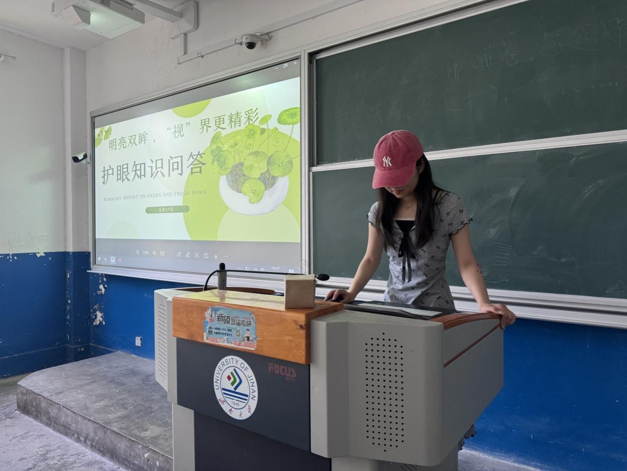 “逐光”青年志愿者协会联合济南大学伴你同行爱心社于6月17日在济南大学舜耕校区开展“护眼知识问答”线下活动,吸引众多同学积极参与,在校园掀起关注眼部健康的热潮。