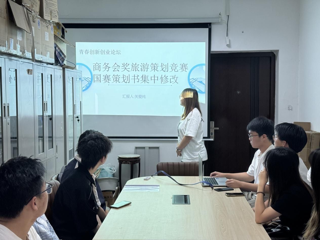 开展了"青春创新创业论坛——商务会奖旅游策划竞赛国赛策划书集中修改"活动。本次活动由学院创新创业部干事关爱纯同学主持,吸引了十余名参赛学生积极参与。