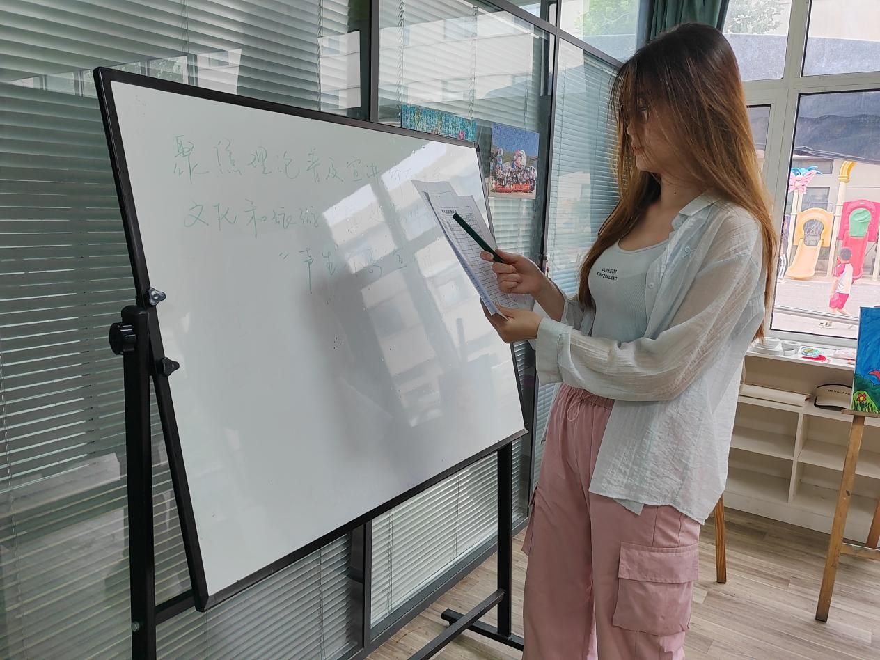 “声生不息宣讲行”暑期社会实践团一行10人,在队长黄艺琛的带领下,赴德州市齐河县晏城街道永祥社区开展实践活动。团队以“解码青年话语密码,构建新时代叙事体系”为核心,通过线上线下调研、团队观察、成果研讨等方式,探索主流思想在新媒体场域中的“青年化”表达与传播路径,用青春视角架起主流价值与青年群体的沟通桥梁。
