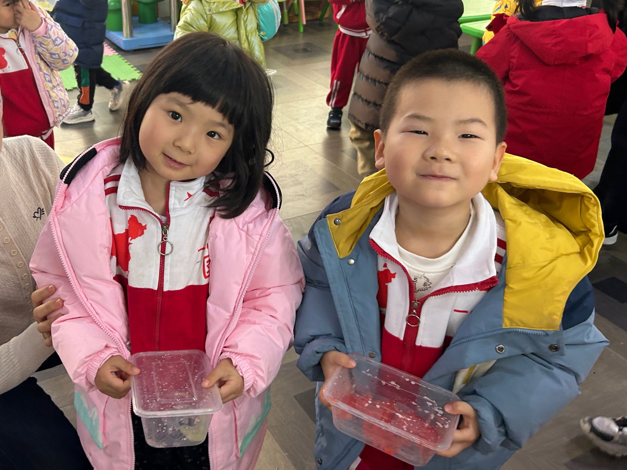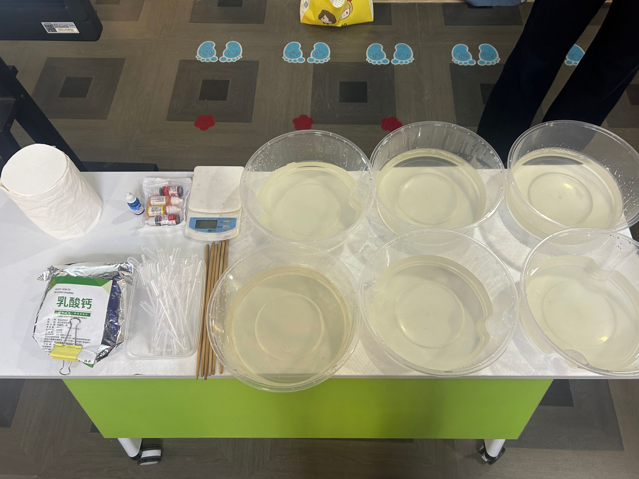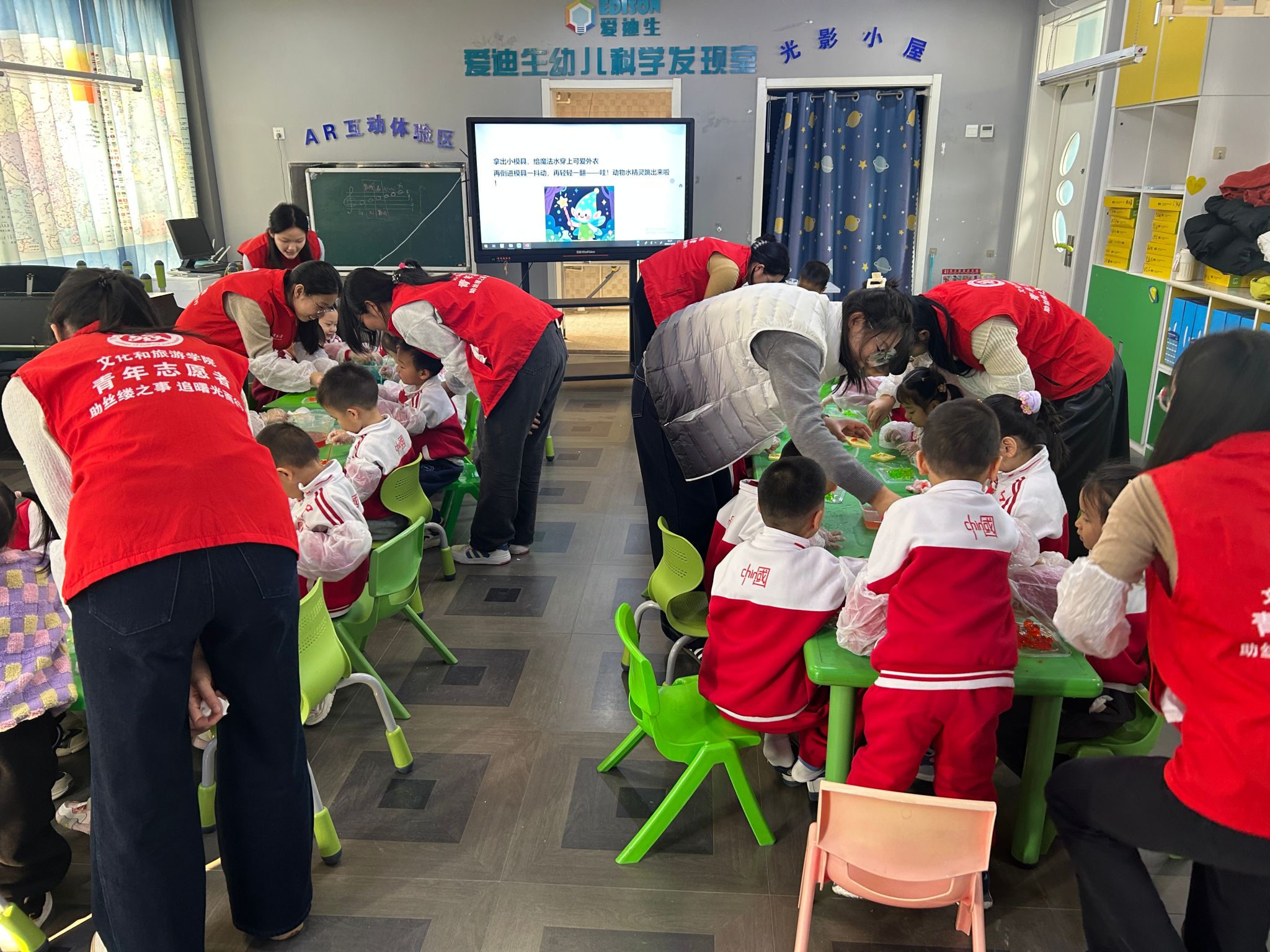 活动全程,志愿者们始终将安全置于首位。所有实验材料均选用食品级原料,且反复强调“不可食用”的原则,师生配比也严格遵循安全标准,确保孩子们能安心探索。烹饪与营养教育专业的志愿者们,将专业课堂中的分子料理知识拆解为幼儿可感知、可操作的实验步骤,让原本抽象的化学反应,变成了看得见、摸得着的趣味体验。