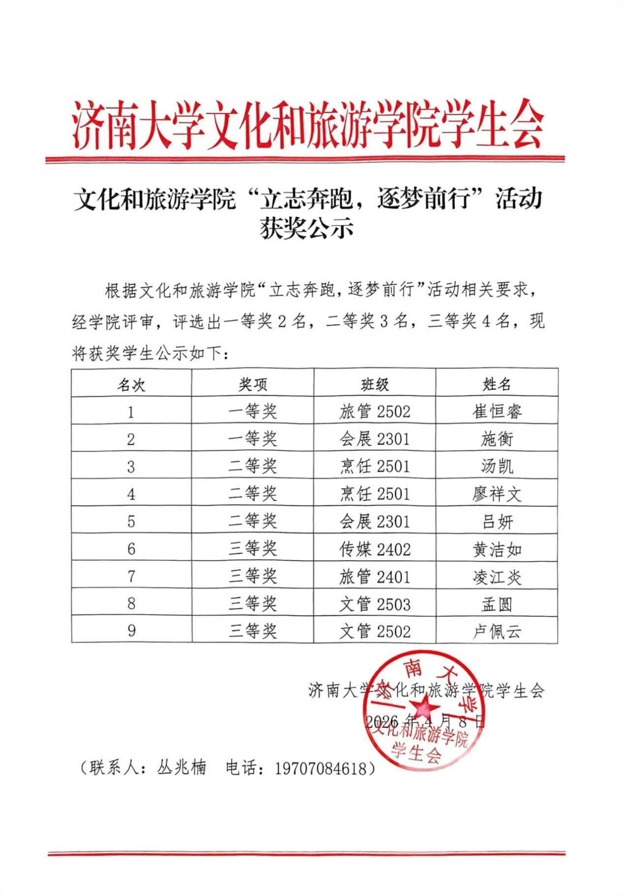 此次阳光跑主题活动,有效激发了同学们参与体育锻炼的积极性,让健康运动的理念深入人心。未来,济南大学文化与旅游学院“逐光”青年志愿者协会与伴你同行爱心社将持续发挥引领带动作用,以阶段性活动带动长期习惯养成,引导全体同学坚持健康学习、快乐生活,在持之以恒的锻炼中绽放青春光彩。