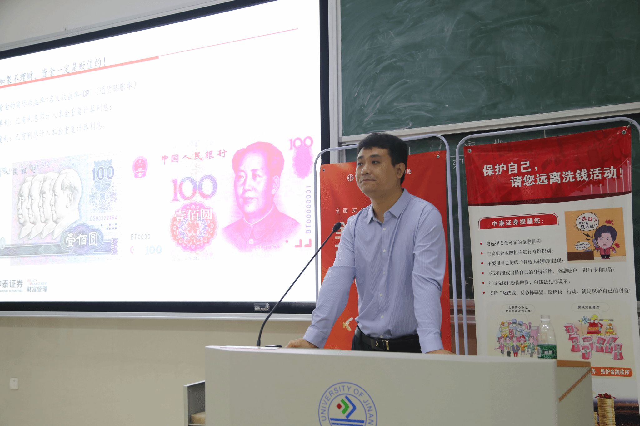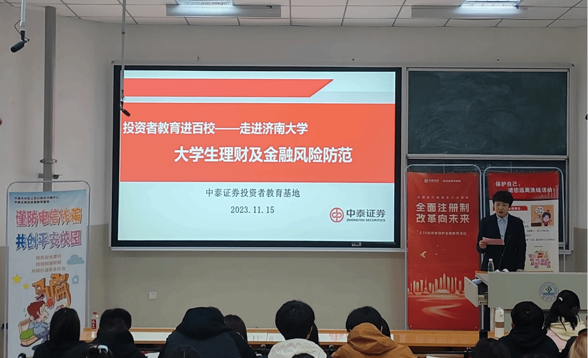 与中泰证券投教基地于济南大学舜耕校区第三教学楼202教室携手开展“大学生理财金融风险防范”知识讲座,蜂鸟电竞