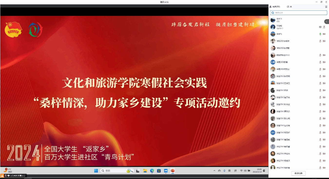 以线上视频的方式举行2024年大学生寒假社会实践活动系列动员会暨答疑会,共计500余名师生参与。