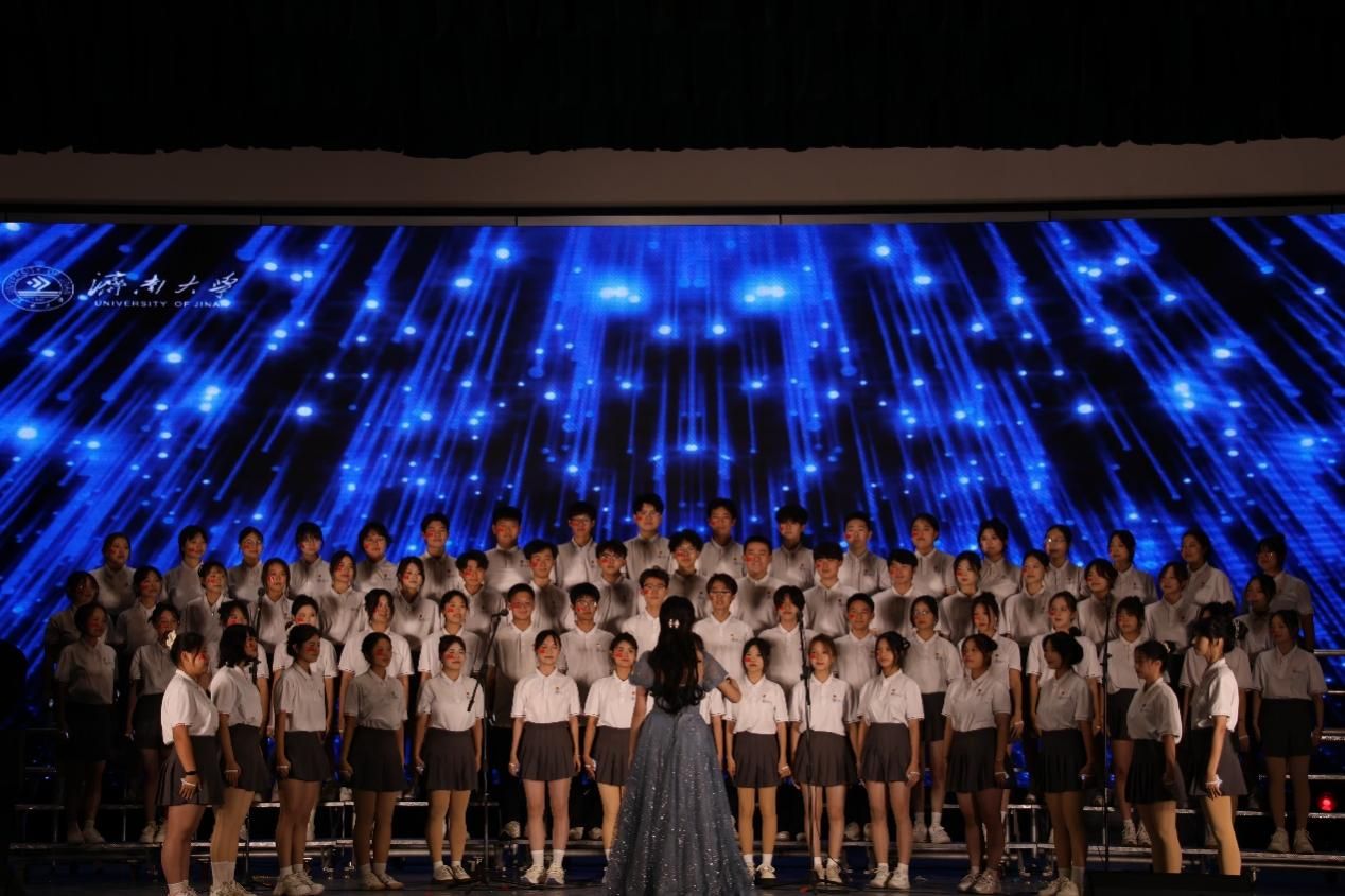 合唱团用校歌《你我同行》和自选曲目《夜空中最亮的星》惊艳全场。《你我同行》浑厚有力,婉转动人,唱出了济大人的使命与担当,展现出了济大学子昂扬向上的精神风貌;《夜空中最亮的星》深情动人,表达了文旅学院学生对未来的美好憧憬与坚定信念。演唱过程中,同学们情绪饱满,声音嘹亮,将歌曲中的情感表达的淋漓尽致,赢得了现场观众和老师们的欣赏与认可。