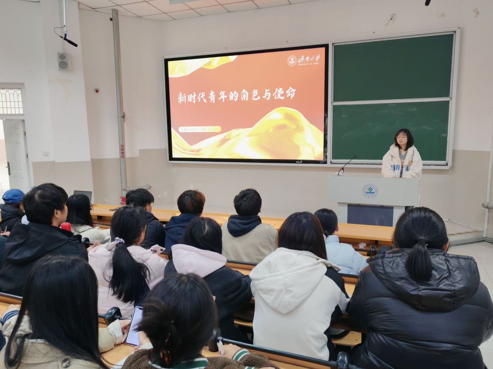 于舜耕校区D3J202教室开展了"新时代青年的角色与使命"青马培训课程,共70名团员参加。
