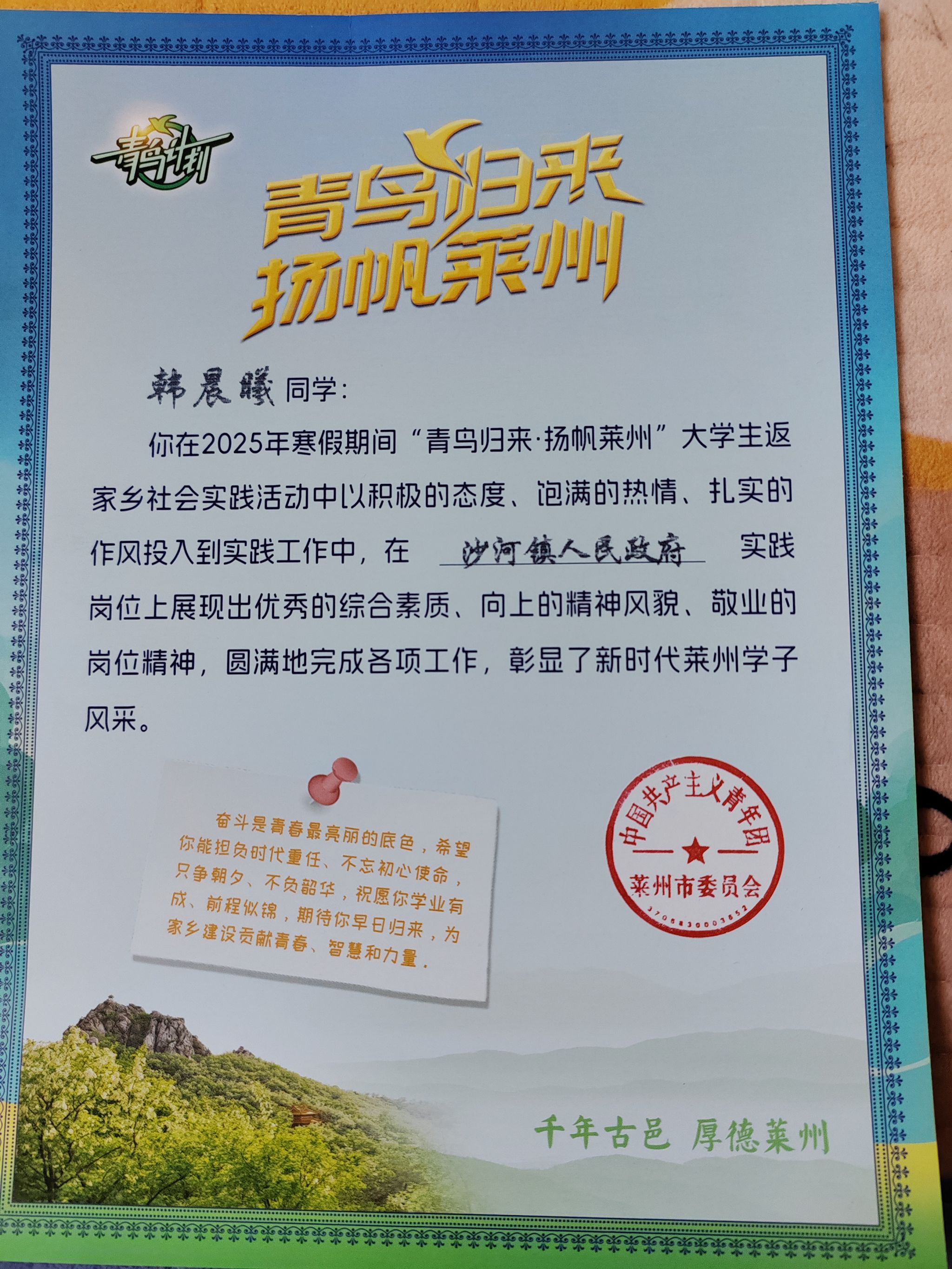 2025年1月13日,旅管23H2韩晨曦走进沙河镇人民政府党政办公室,完成了为期36天的基层实践。她通过处理用章信息录入、舆情监测分析等核心工作,将课堂所学的办公软件操作、新闻写作等专业知识融入政府实务。面对原始数据模糊缺失的难题,她创新采用Excel数据验证功能构建标准化录入模板;针对舆情分析深度不足的瓶颈,通过建立关键词追踪机制精准捕捉热点,结合旅游管理专业知识撰写多篇具有预警价值的分析报告。
