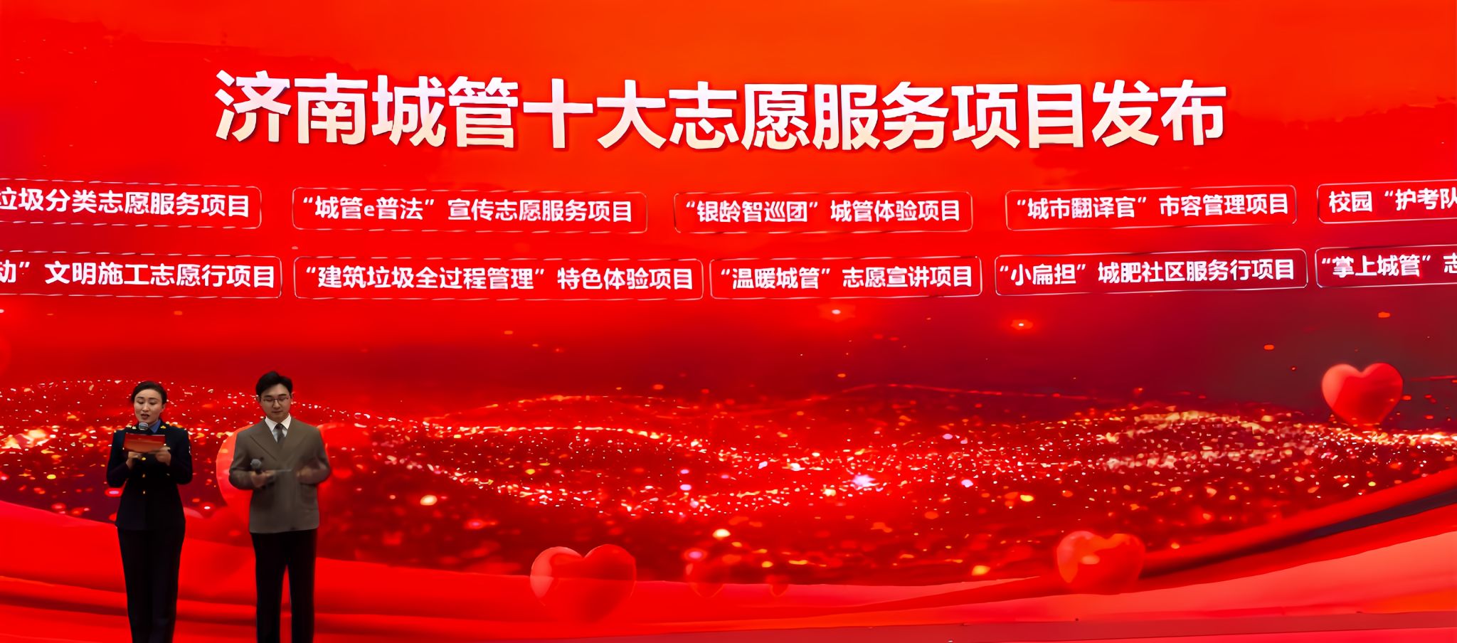 活动中发布了济南城管十大志愿服务项目,7支志愿队伍成为济南城管志愿服务联盟首批联盟成员并获授旗,来自7支城管志愿服务团队的76名志愿者被聘为“城管社会监督员”。“壹点公益”负责人刘桂斌从市城管局领导手中接过旗帜,代表团队荣膺"优秀志愿者团队"称号,通过旗帜传递的仪式感,生动展现了社会力量与城市治理的深度融合。
