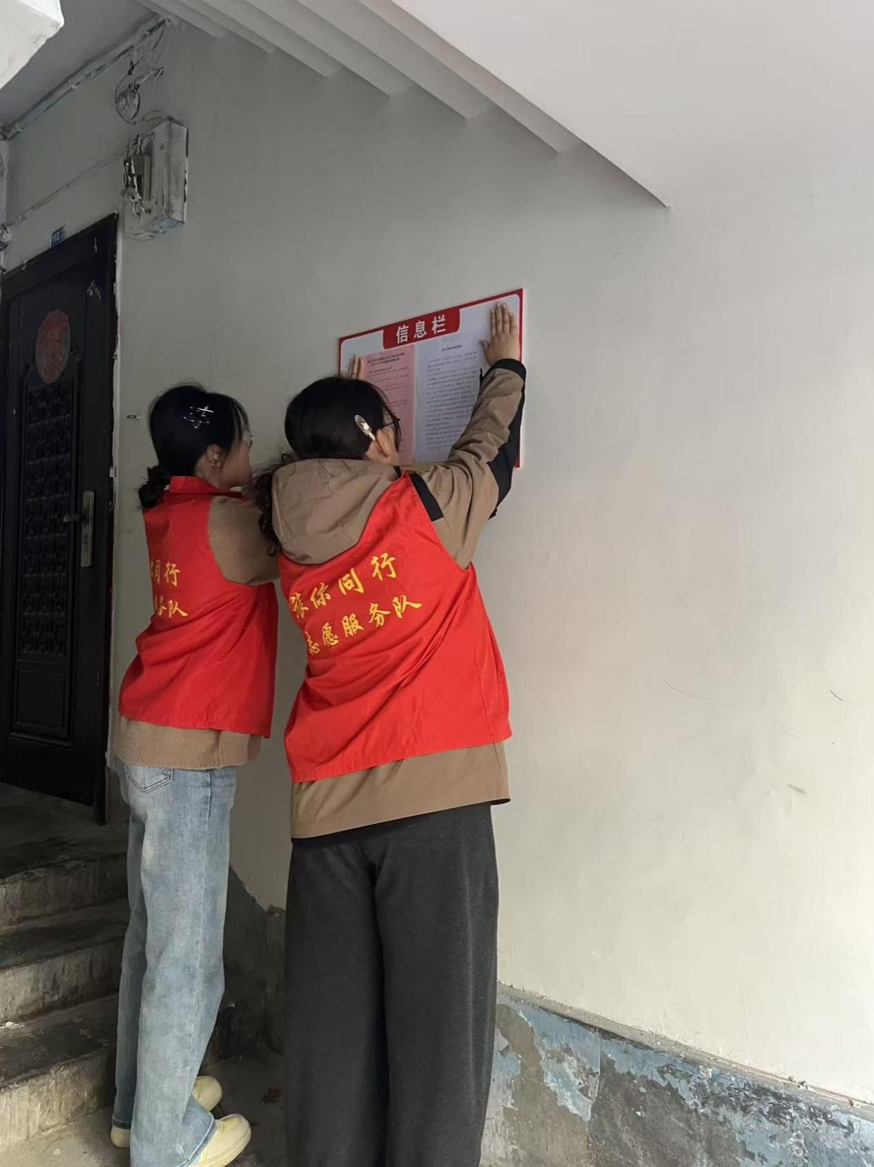 与此同时,宣发传单与公告张贴工作同步推进。一组志愿者手持宣传资料,在社区广场、沿街区域向居民发放,用通俗易懂的语言详细讲解政策要点与便民信息;另一组志愿者则带着公告与胶水,逐栋进入居民楼,将公告规范张贴在指定公示区域,确保信息精准触达每一户居民,有效提高了社区政策与便民服务的知晓率。