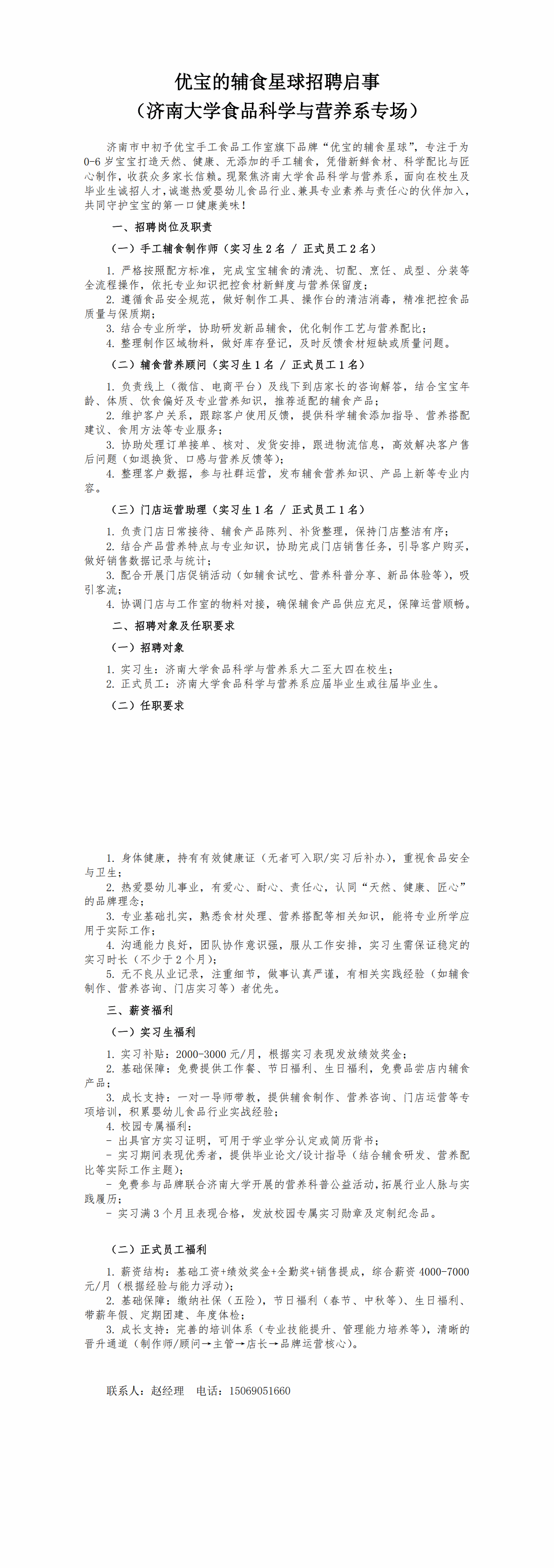 优宝的辅食星球招聘启事 (济南大学食品科学与营养系专场)
