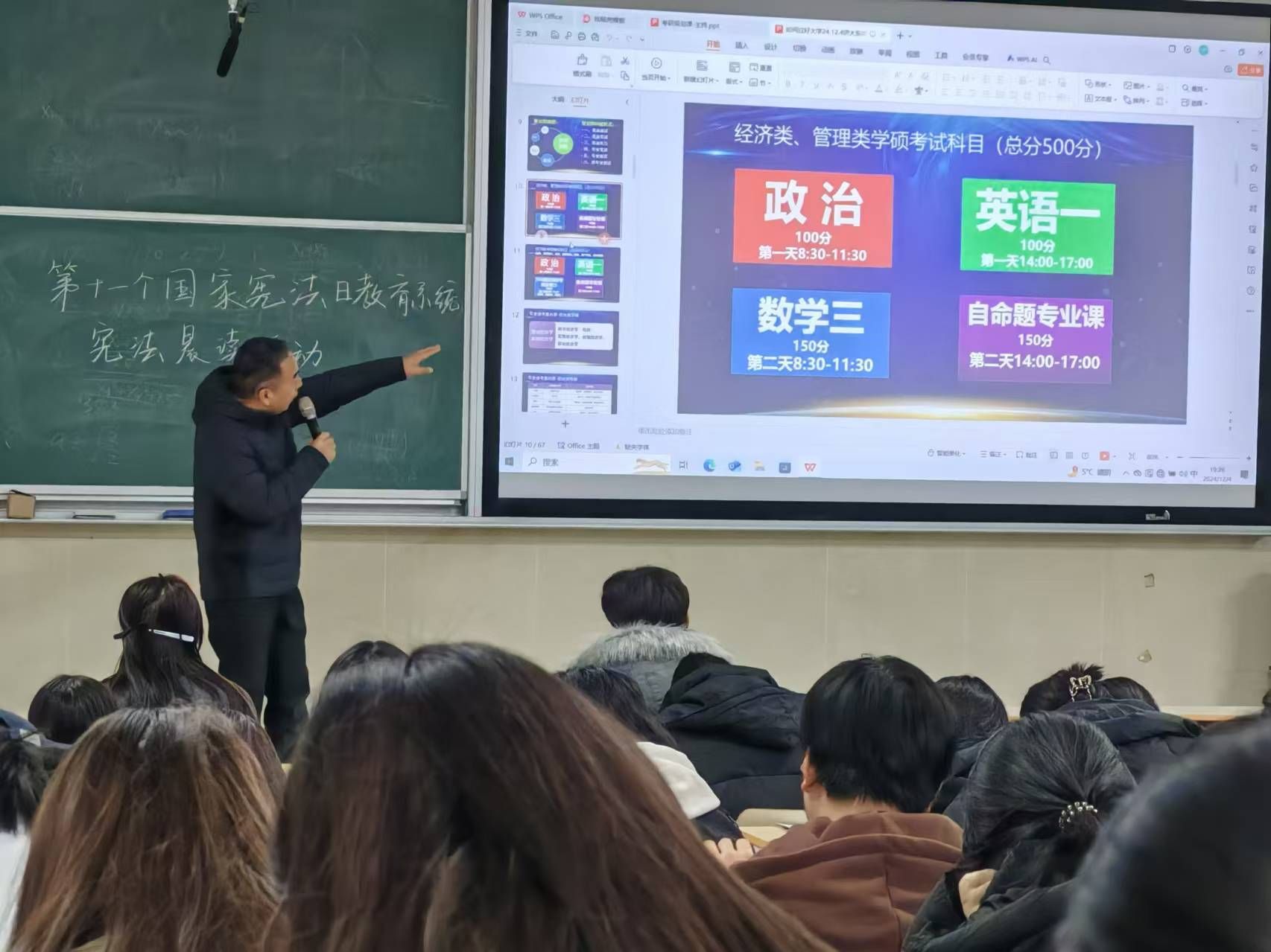 在此次讲座中,全国著名考研指导专家周勇老师作出的演讲内容主要是从他自身的实践经验出发,详细的分析了经济类、管理类学硕考试科目,解释了学硕和专硕的区别,还有关于山东公务员考试的招录门类等等,周勇老师为大学生未来更好发展提出了宝贵建议:培养积极外向的性格,锻炼上台演讲能力,学习英语。