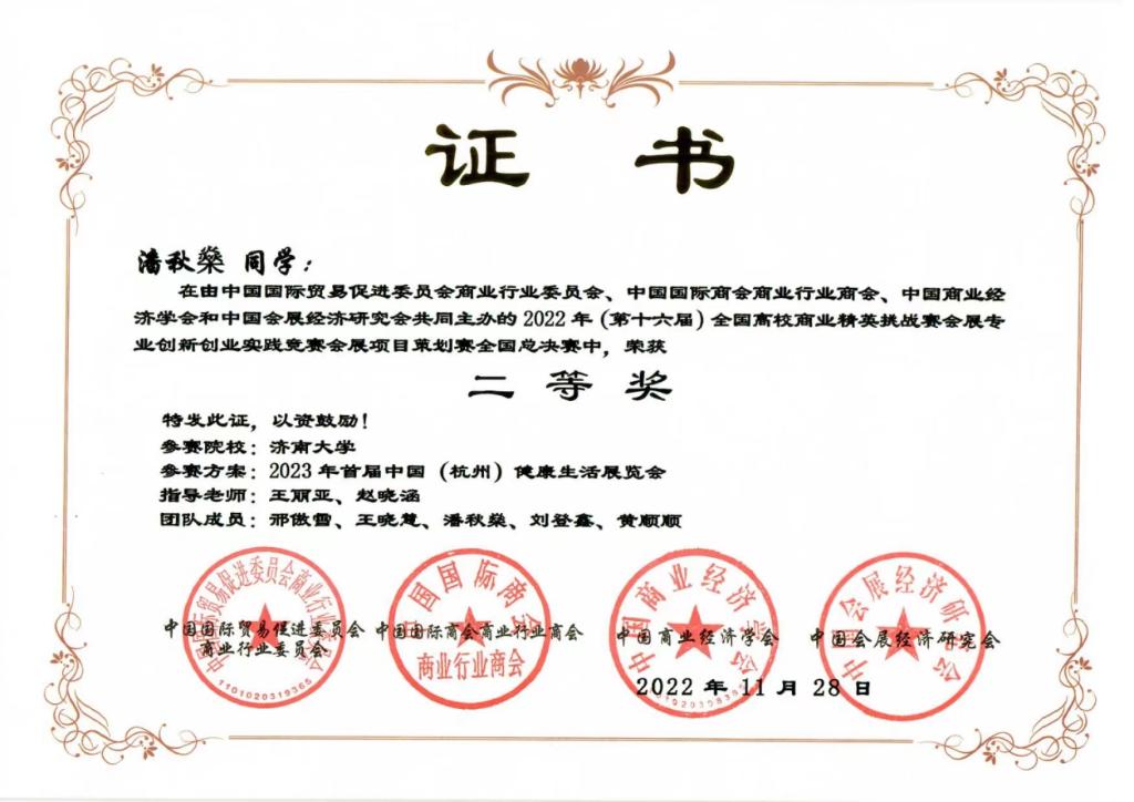 本次比赛经理论知识赛、校赛、省赛、全国赛等层层选拔,历时8个月时间。最终由学院王丽亚、赵晓涵老师指导,邢傲雪、王晓慧、潘秋燊、刘登鑫、黄顺顺等学生完成的作品“2023年首届中国(杭州)健康生活展览会”获得全国二等奖;王宇倩老师指导,李心怡、李沛鑫、韩佳怡、郭冉冉、沈美慧等学生完成的作品“‘源头、融合、想象’——特色民族服饰展览会”获得全国三等奖。